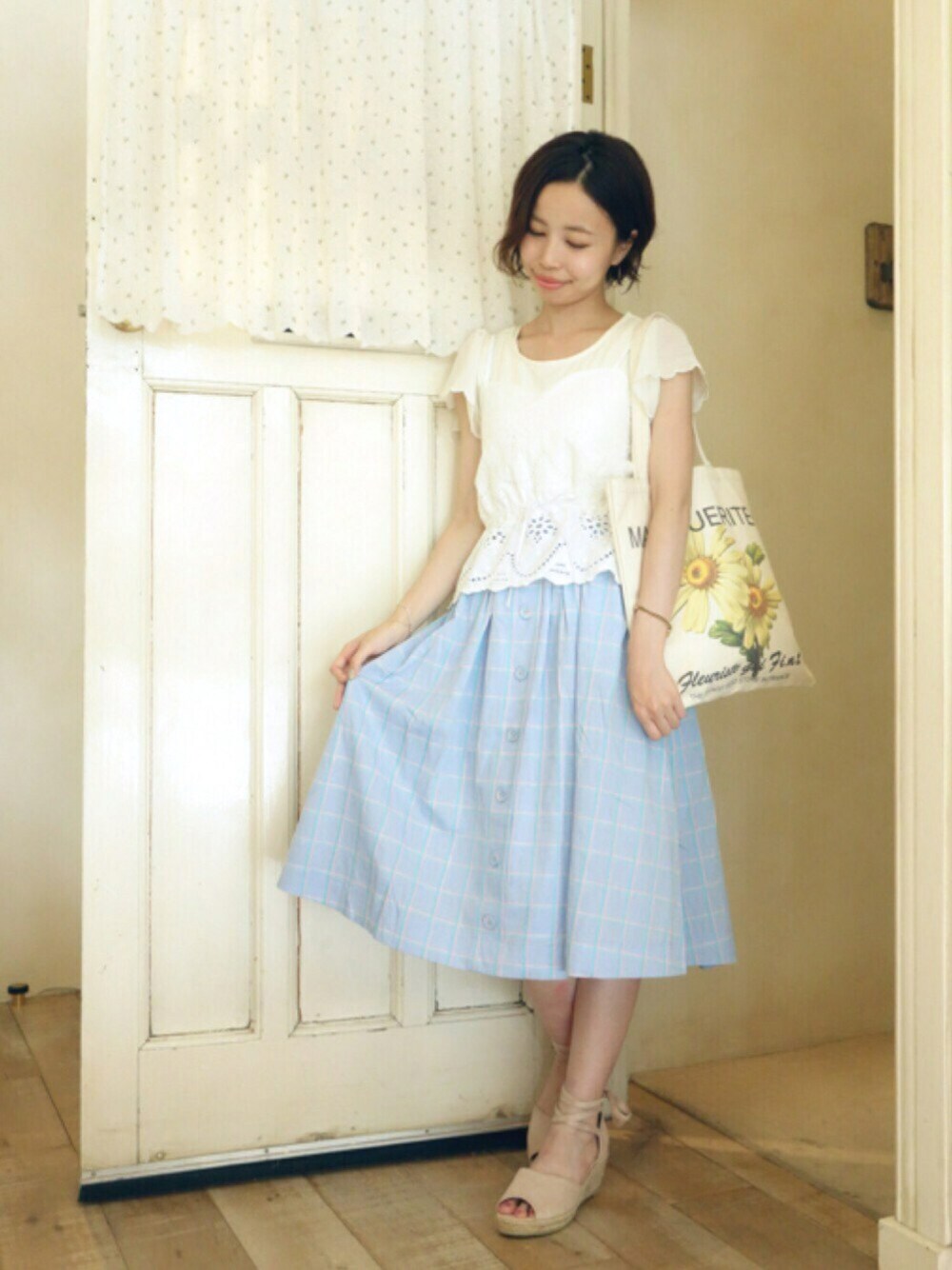 F i.n.t(F i.n.t オンラインストア)のスカート「パステルチェック前釦ギャザースカート/F i.n.t」を使ったコーディネート