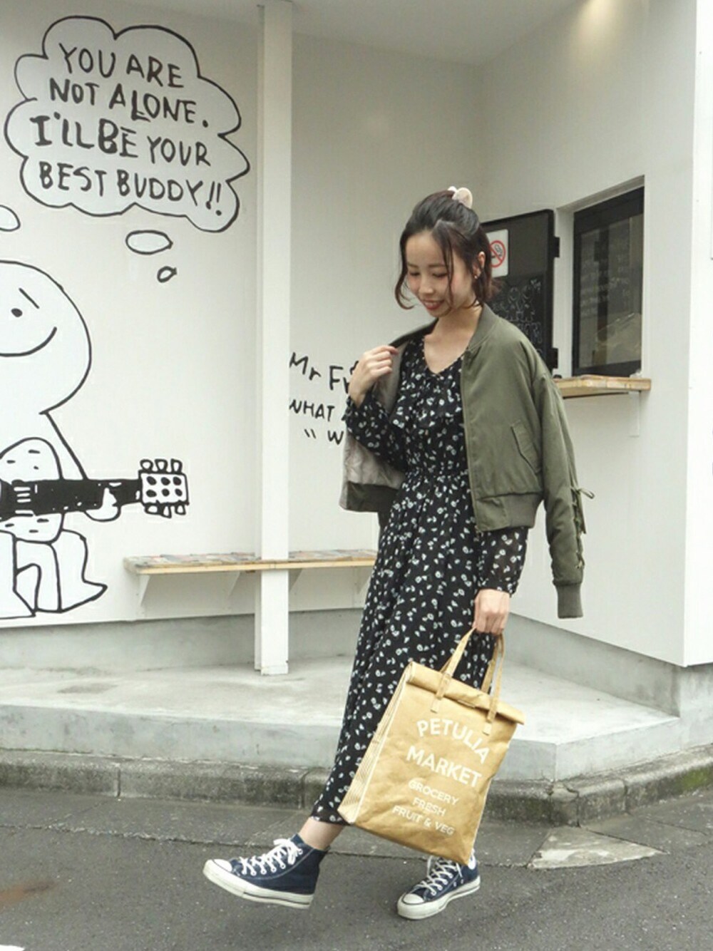 カーキのMA-1に花柄ワンピを合わせた大人カジュアルコーデ♡ 小物もスニーカーも黒で統一して秋っぽく♪ ************************ ユーザー名(アンアナザーアンジェラス)と合わせて日々スタイリング更新中です♪ ショップのイベント情報はインスタグラムをcheckしてくださいね♡ 【F i.n.t Instagram】@fi.n.t_official 【angelus Instagram】@an_another_angelus_official 商品のお問い合わせは、 店舗までご連絡ください♪ 🔸F i.n.t代官山店🔸03-5428-0348