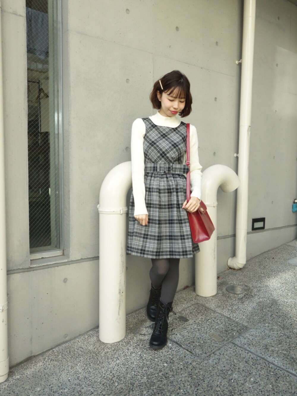 F i.n.t(F i.n.t オンラインストア)のワンピース「起毛チェックパイピングワンピース/F i.n.t」を使ったコーディネート