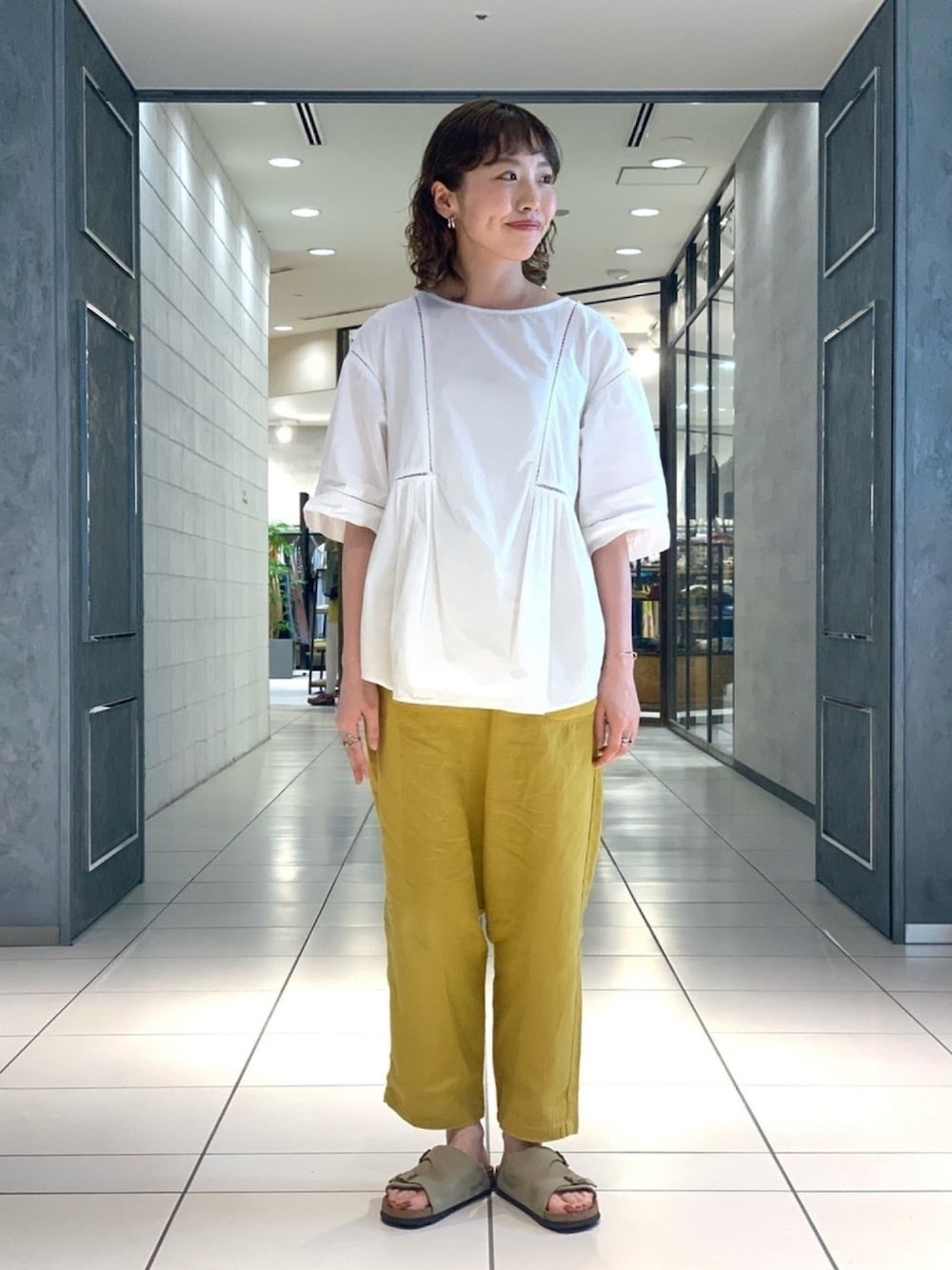 イエローカラーを取り入れた夏らしいコーディネート🍋 DANTONのリネンイージーパンツは、程よいリラックス感があり履き心地もとても良いです! ハシゴレースブラウスと合わせて涼しげな印象にしてみました!
