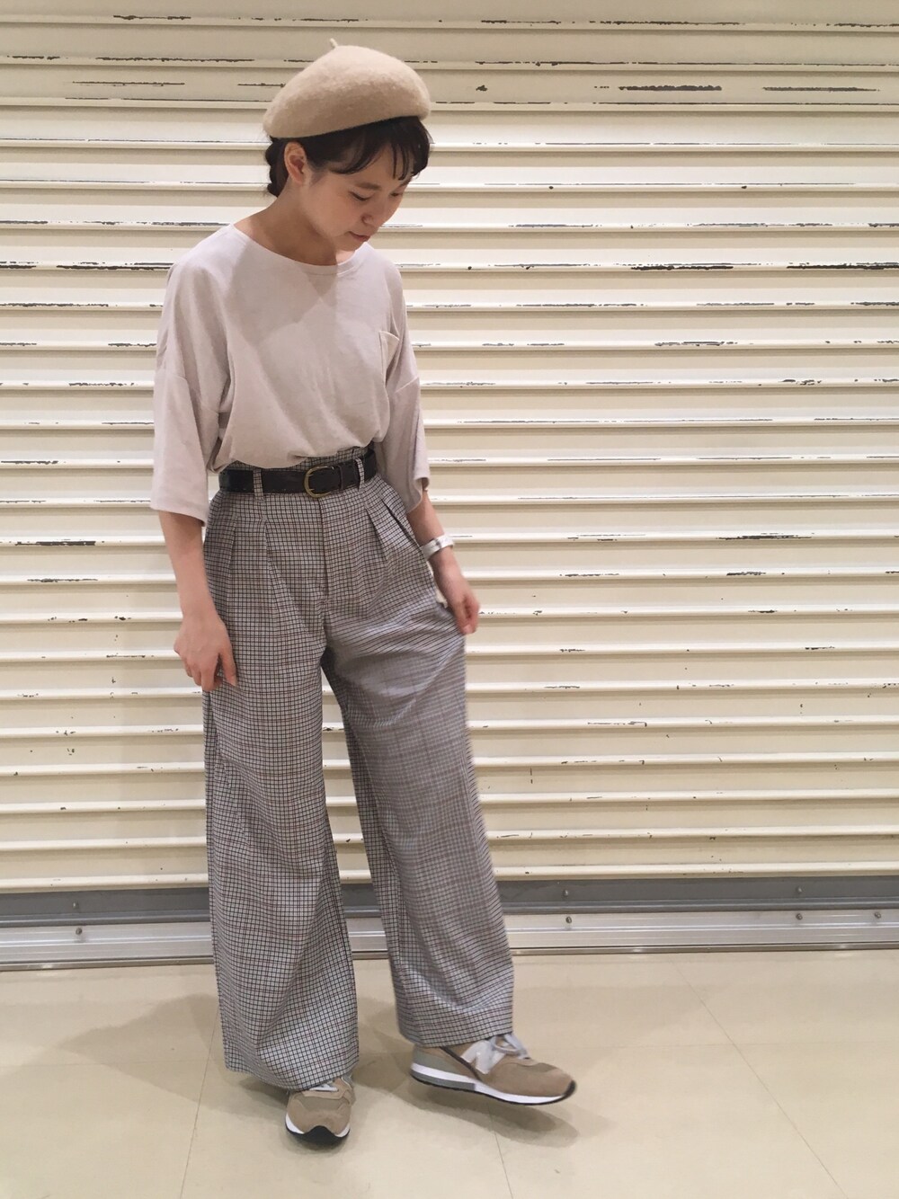 シンプルな淡い色で まとめました…🌿 チェックパンツは、ベルト付きですが あえて皮のベルトに変えてみました🐟