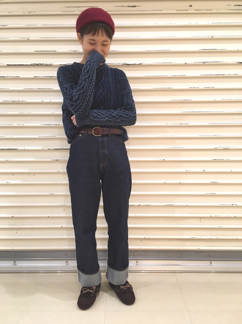 ワントーンコーデも デニムのようなケーブルニットで 一味違うものに…🌿