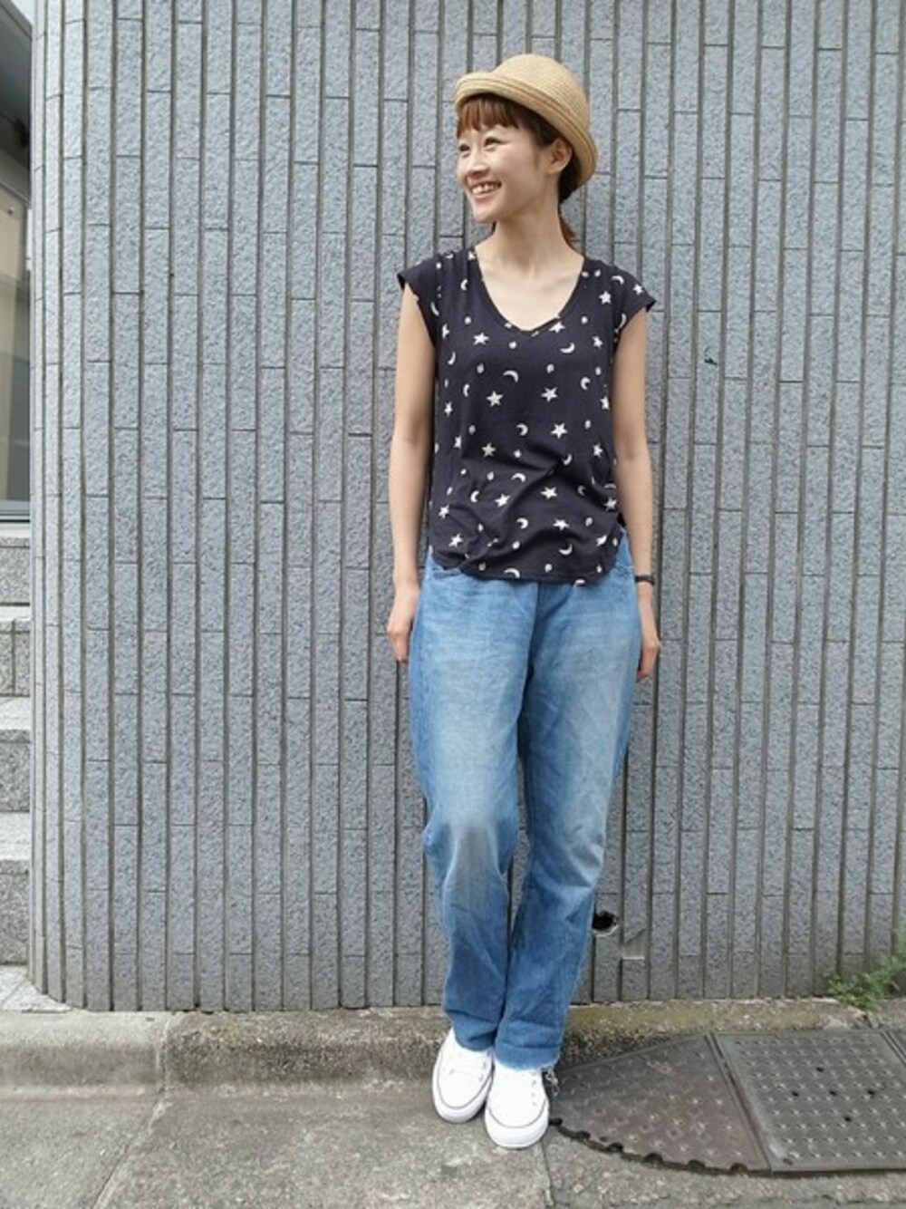 人気の ORIGINAL PATTERN NO SLEEVE CUTSEWN に CA4LAxGDC pocketable braid hat を合わせました! 一気に夏っぽくなりますねー♪