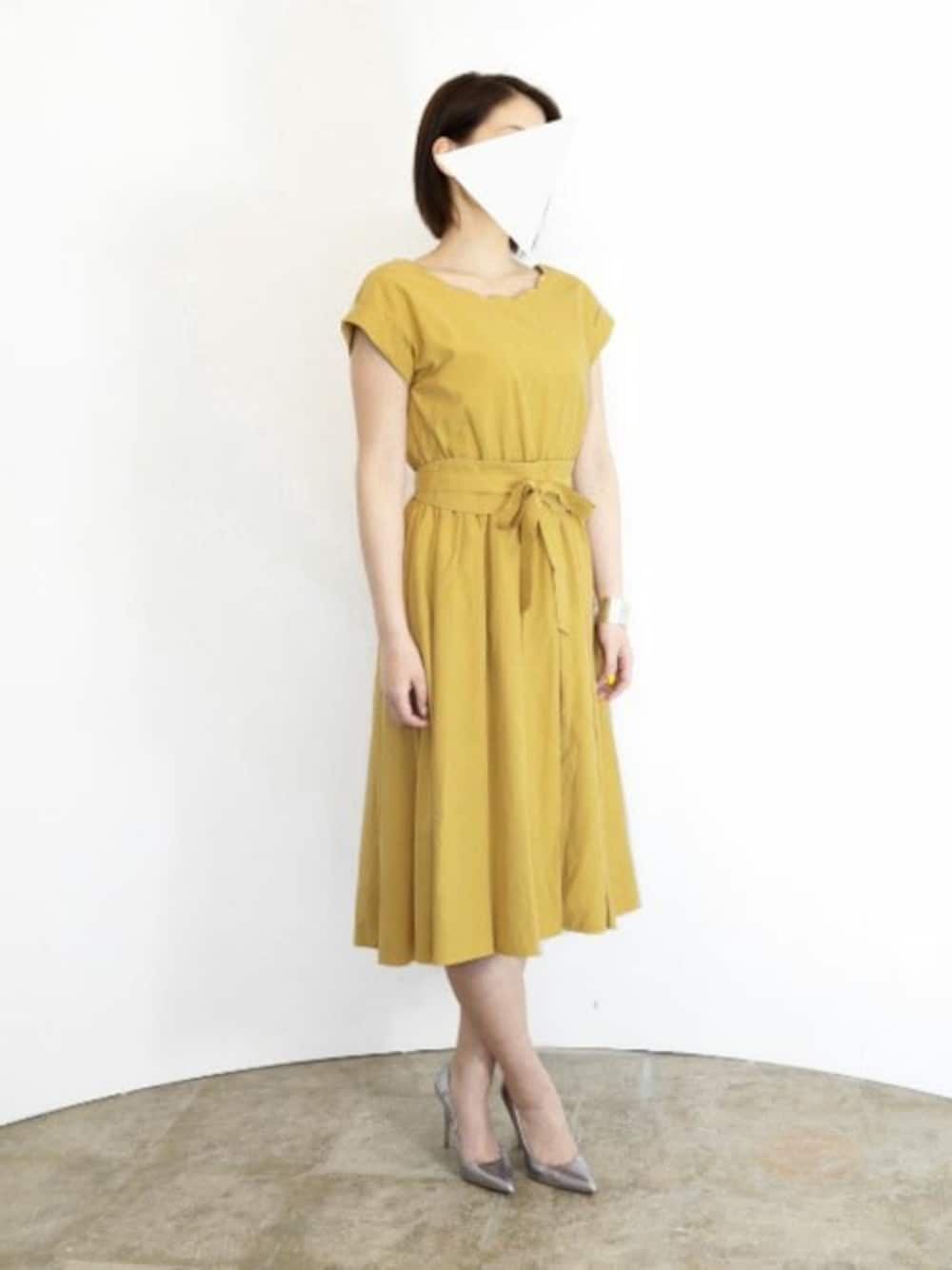 スカラップカットの襟開きがデコルテを綺麗に見せてくれます。 また、背面のネックレスで全方位文句なしに美しいワンピースです。ネックレスは簡単に取り外しができますので、コーディネート次第で外していただくこともできます。 スカート部分はボリュームのあるテールのついたフレアタイプです。 丈はひざ下なのでデイリーに使いやすい長さです。