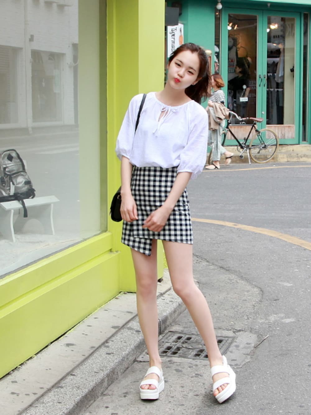 GOGOSINGのスカート「ギンガムチェックラップスカート」を使ったコーディネート