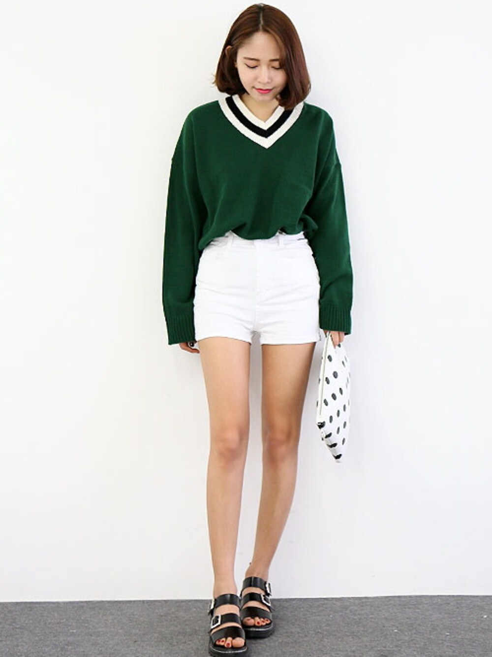 GOGOSINGのニット/セーター「Vネックルーズラインニットソー」を使ったコーディネート