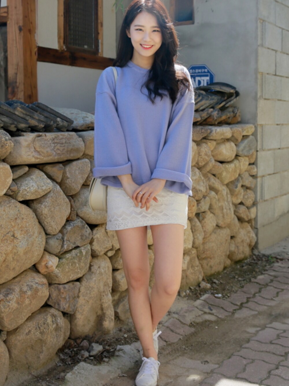 パステルカラーの爽やかコーデ 袖のロールアップがポイント♪ ニット ¥ 1,850 (税込) http://me2.do/GIcVSxHU ★会員登録で100ポイントプレゼント★