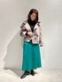 トレンドカラーのグリーンが鮮やかなスカートを主役にコーディネート。 子供っぽくならないようトップスや足元はブラックで引き締めました。春アウターはたくさん着回ししたいので合わせやすく着心地も楽なダンボールニット素材をチョイス。絶妙なこなれ感が出るモカカラーがさりげなくコーディネートを格上げしてくれます◎