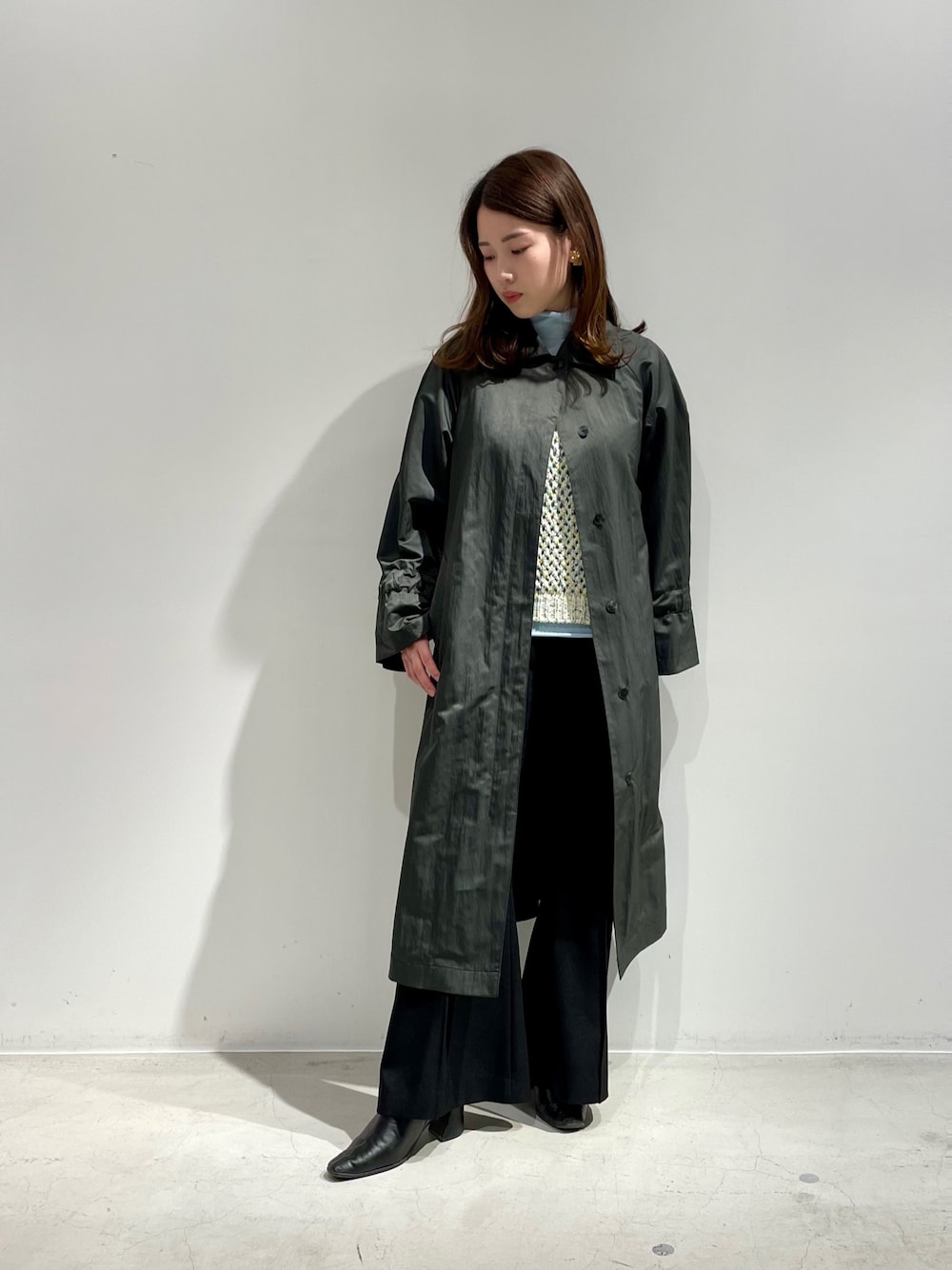 misakiのステンカラーコート「グレーボリュームスリーブステンカラーコート」を使ったコーディネート
