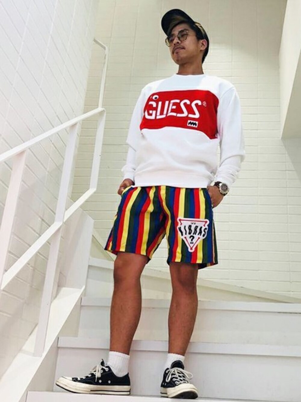 GUESS JAPAN(GUESS JAPAN)のスウェット「GUESS x J BALVIN COLOR-BLOCK LOGO SWEAT」を使ったコーディネート