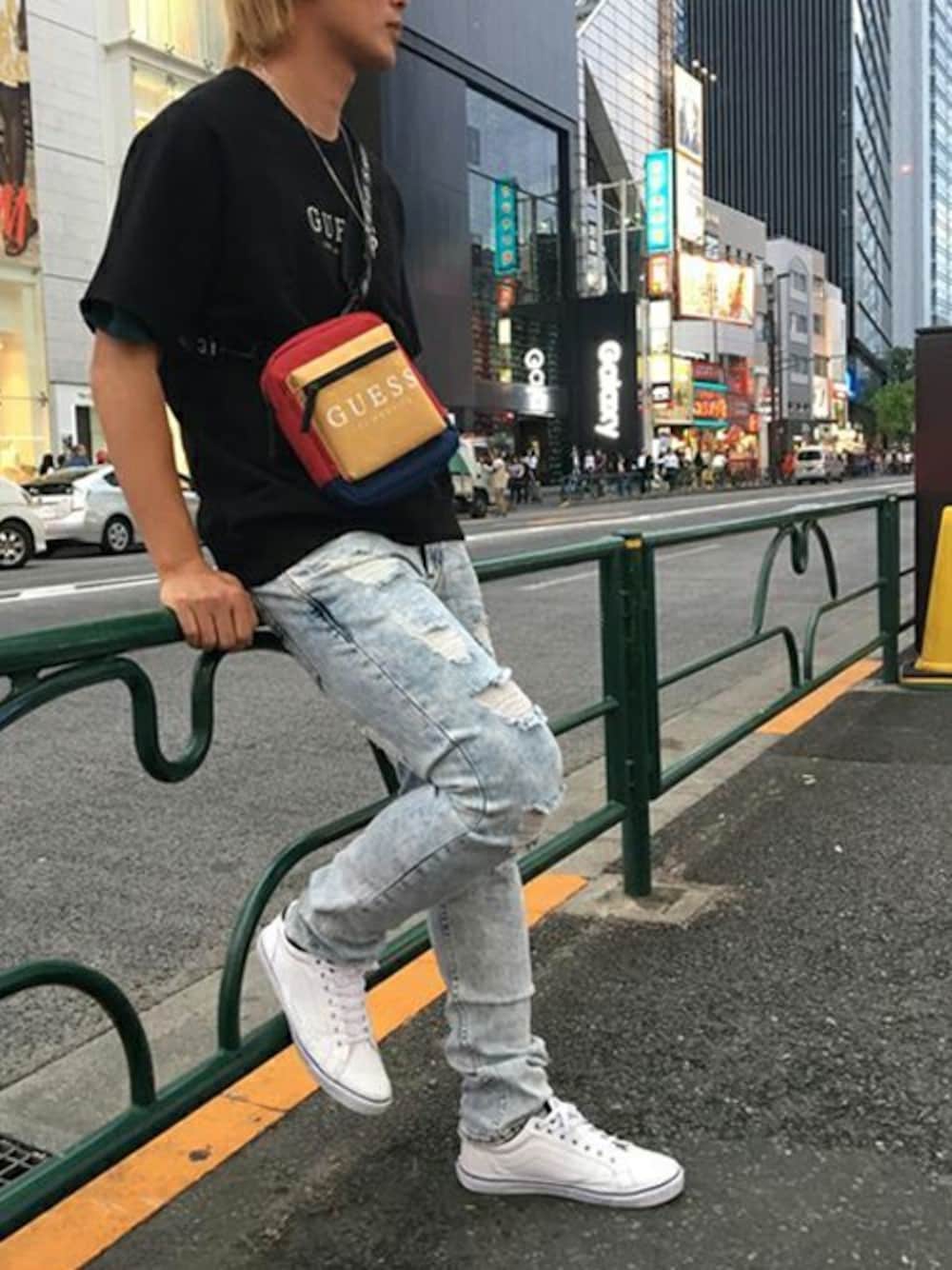 GUESS JAPAN(GUESS JAPAN)のショルダーバッグ「CHROMATIC MINI FRONT SLING」を使ったコーディネート