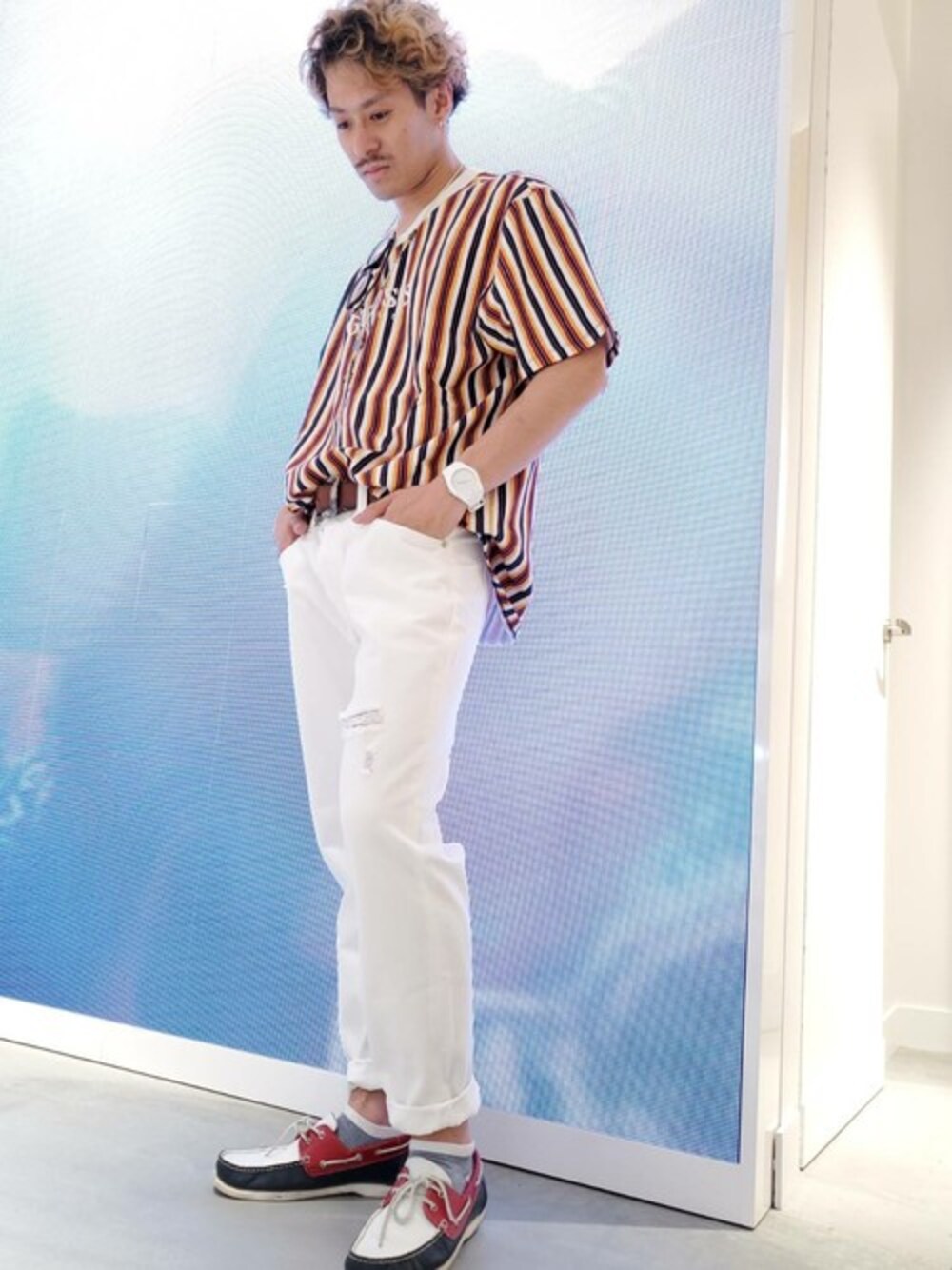 【item info】 ・トップス item number:M91P03R5DD3 color:F5J3 着用size:XL ¥6,900+tax ・ボトムス item number:MJ2D4059 color:WHT 着用size:32 ¥12,900+tax 【model info】 ららぽーとEXPOCITY店 モデル情報: 175cm ※ZOZOTOWNでお取り扱いのない商品に関しては、店舗・オフィシャルオンラインストアまでお越しください。 在庫状況によりご覧いただけない場合もございます。ご了承くださいませ。 皆様のお越しをお待ちしております! ※記載価格は上代です。変動する場合もございます。ご了承くださいませ。