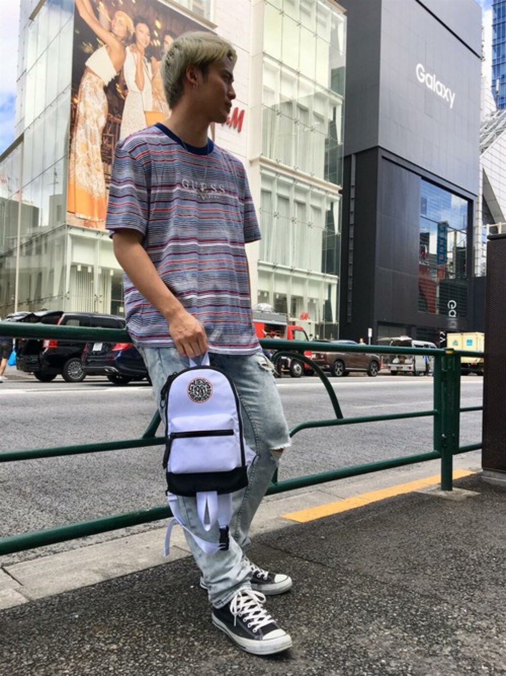 GUESS JAPAN(GUESS JAPAN)のTシャツ/カットソー「GUESS Originals BOARDWALK STRIPE CREW-NECK TEE」を使ったコーディネート