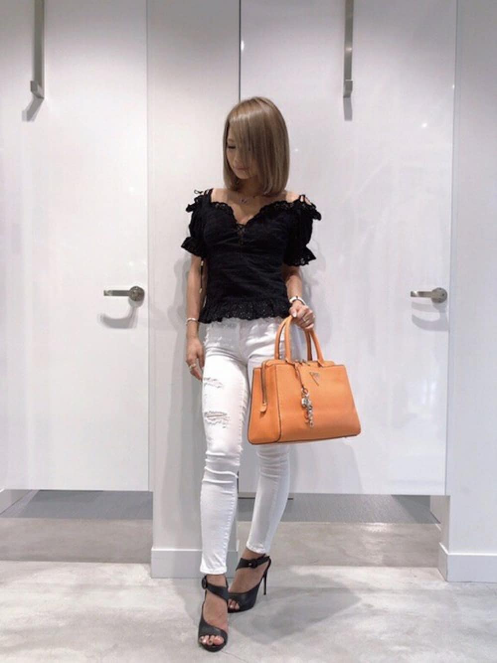映えやすい白のダメージデニムに黒のレース柄オフショルダーでシンプルにまとまとめて、 差し色のオレンジでワンポイントに大人のシンプルに。 【item info】 ・トップス item number:W92H0CWBK90 color:JBLK 着用size:XS ¥7,900+tax ・ボトムス item number:YJ2D4053 color:WHT 着用size:24 ¥12,900+tax ・バッグ item number:VG729106 color:ORA 着用size:ONE ¥14,900+tax 【model info】 京都店 モデル情報: 154cm ※ZOZOTOWNでお取り扱いのない商品に関しては、店舗・オフィシャルオンラインストアまでお越しください。 在庫状況によりご覧いただけない場合もございます。ご了承くださいませ。 皆様のお越しをお待ちしております! ※記載価格は上代です。変動する場合もございます。ご了承くださいませ。
