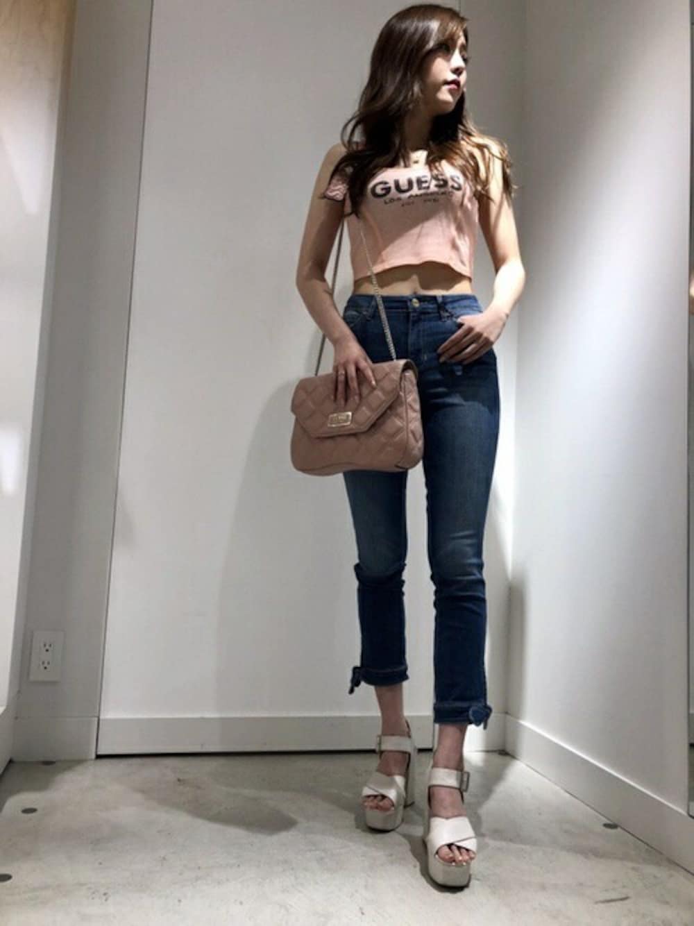 GUESS JAPAN(GUESS JAPAN)のタンクトップ「Ribbed Cropped Logo Tank」を使ったコーディネート