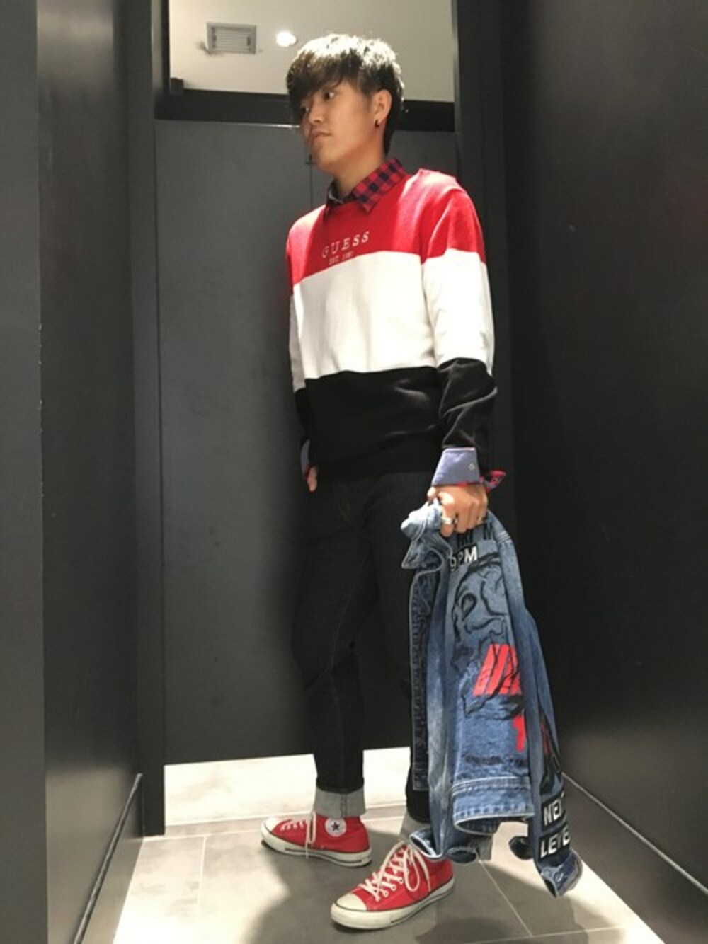GUESS JAPAN(GUESS JAPAN)のデニムジャケット「Dillion Embellished Denim Jacket」を使ったコーディネート