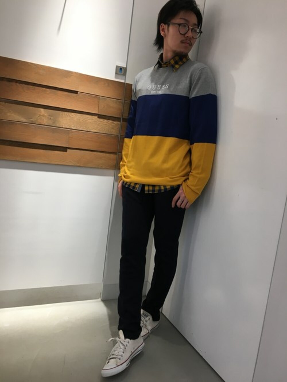 GUESS JAPAN(GUESS JAPAN)のスウェット「COLOUR-BLOCK PRINT LOGO SWEATER」を使ったコーディネート