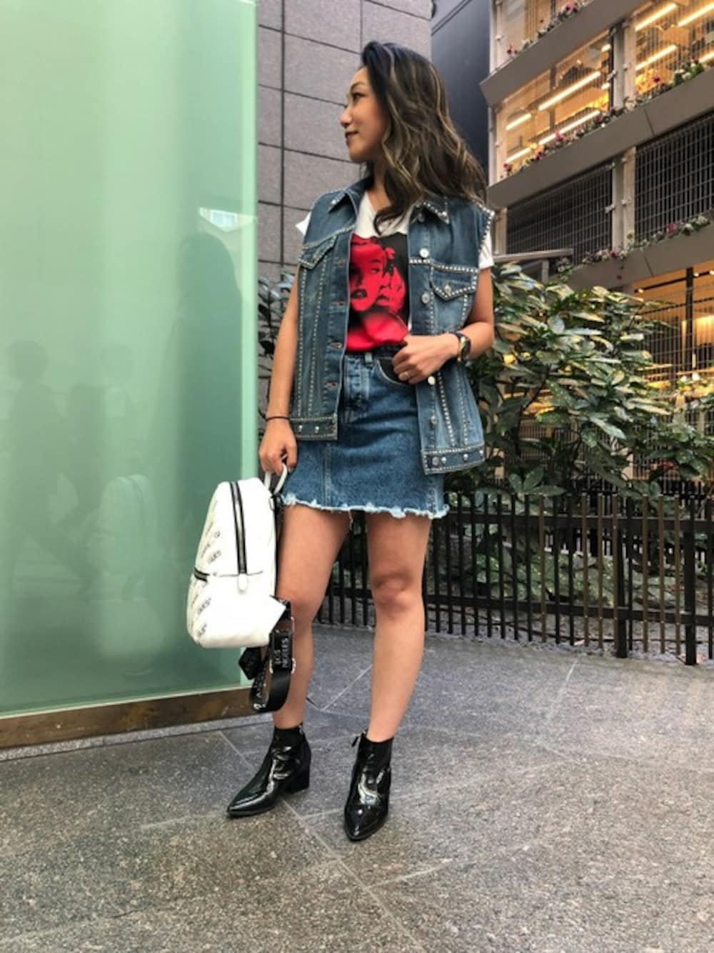 GUESS JAPAN(GUESS JAPAN)のベスト「Ellie Studs Denim Vest」を使ったコーディネート