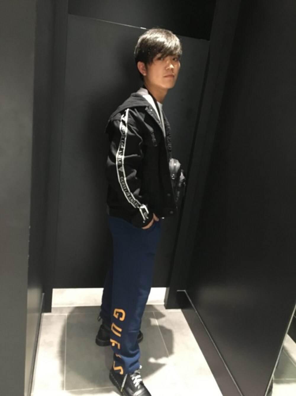 GUESS JAPAN(GUESS JAPAN)のデニムジャケット「ALLEN LOGO STRIPE HOODED DENIM JACKET」を使ったコーディネート