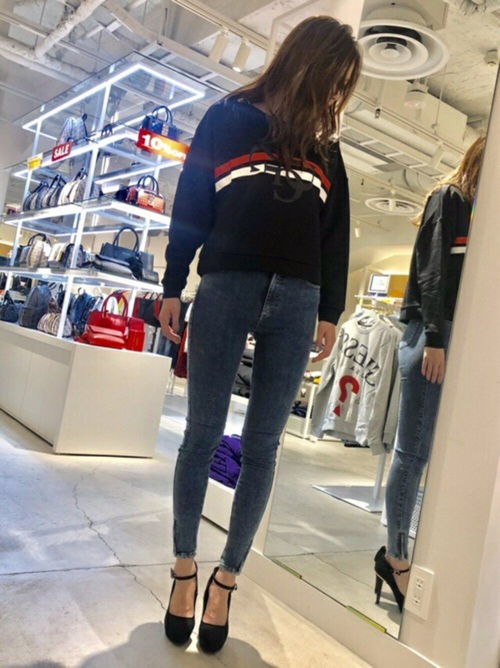 GUESS JAPAN(GUESS JAPAN)のスウェット「GLITTER 4G LOGO SWEAT」を使ったコーディネート