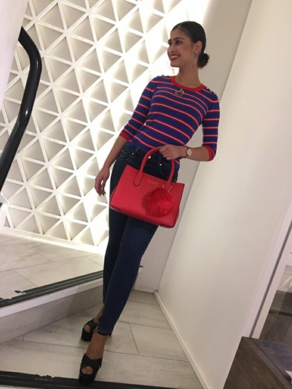 GUESS JAPAN(GUESS JAPAN)のニット/セーター「Adele Striped Sweater」を使ったコーディネート