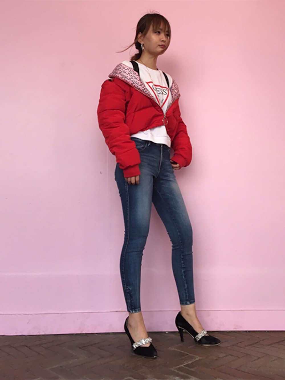 GUESS JAPAN(GUESS JAPAN)のその他アウター「Laurie Laminate Stripe Padded Jacket」を使ったコーディネート