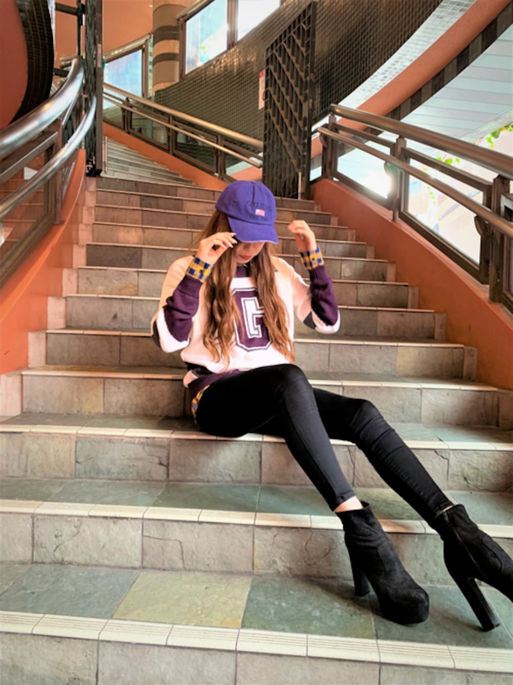 GUESS JAPAN(GUESS JAPAN)のニット/セーター「MARTA COLLEGE LOGO ROUND-NECK SWEATER」を使ったコーディネート