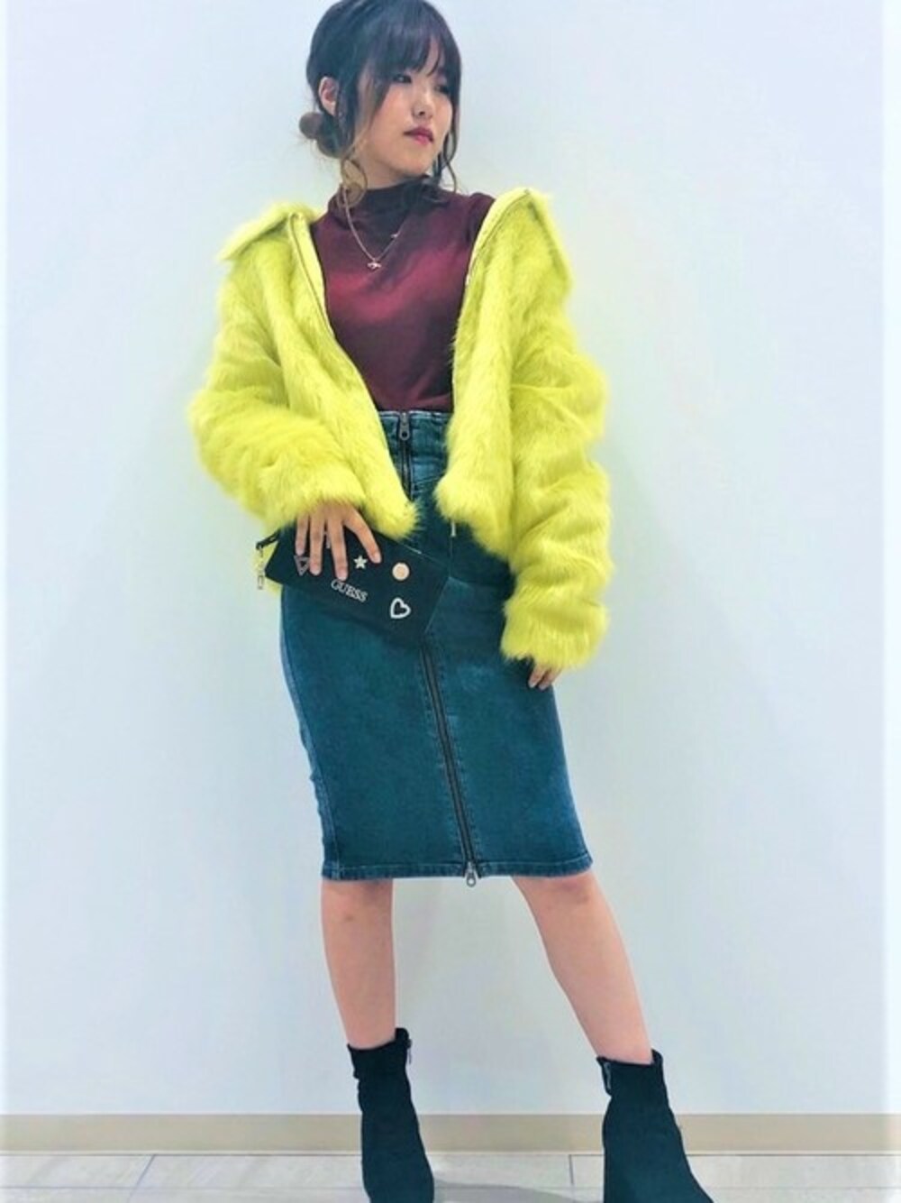 GUESS JAPAN(GUESS JAPAN)のデニムスカート「GUESS x Marilyn Monroe HIGH-WAIST ZIP DENIM SKIRT」を使ったコーディネート