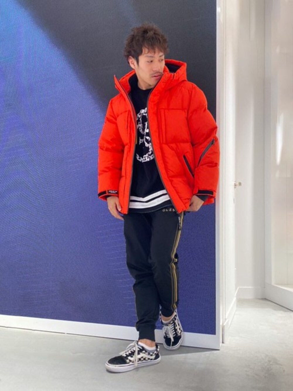【item info】 ・アウター item number:MJ4W5874 color:ORN 着用size:L ¥36,900+tax ・トップス item number:M93P71RI5K2 color:JBLK 着用size:M ¥4,900+tax ・ボトムス item number:M93Q55RJQ32 color:JBLK 着用size:S ¥8,900+tax