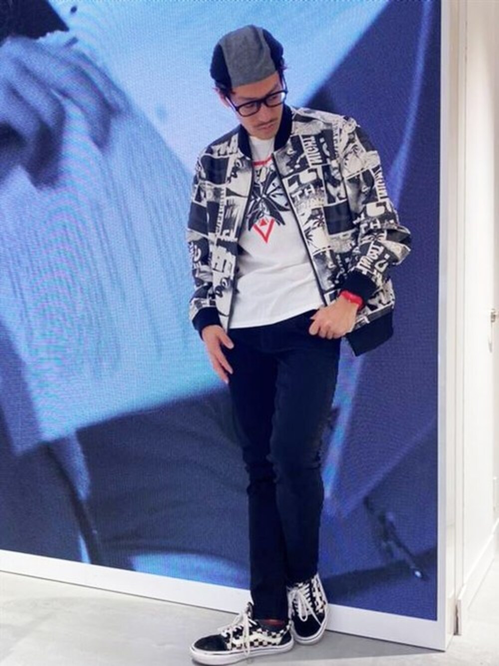 GUESS JAPAN(GUESS JAPAN)のブルゾン「ALPINE SATIN POLAROID BOMBER JACKET」を使ったコーディネート