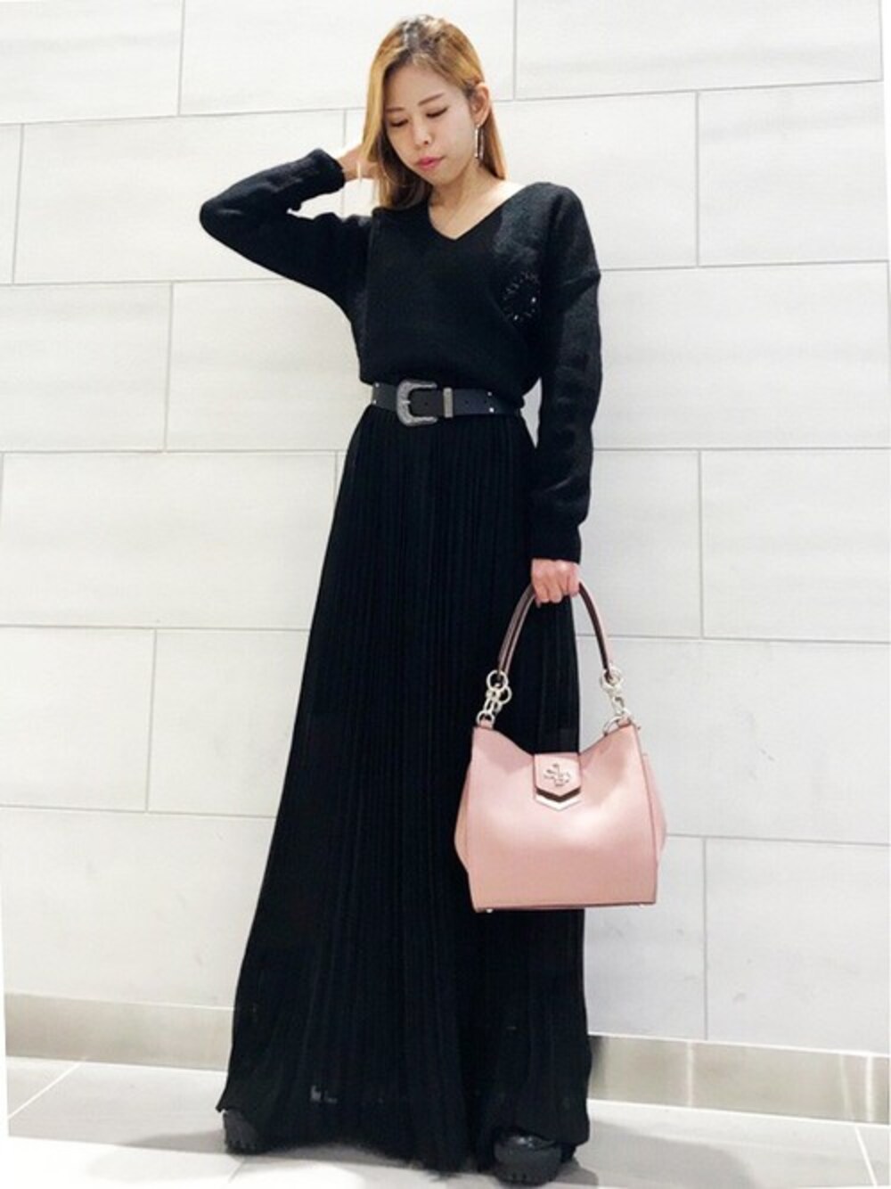 GUESS JAPAN(GUESS JAPAN)のワンピース「MAYA BELTED LONG DRESS」を使ったコーディネート