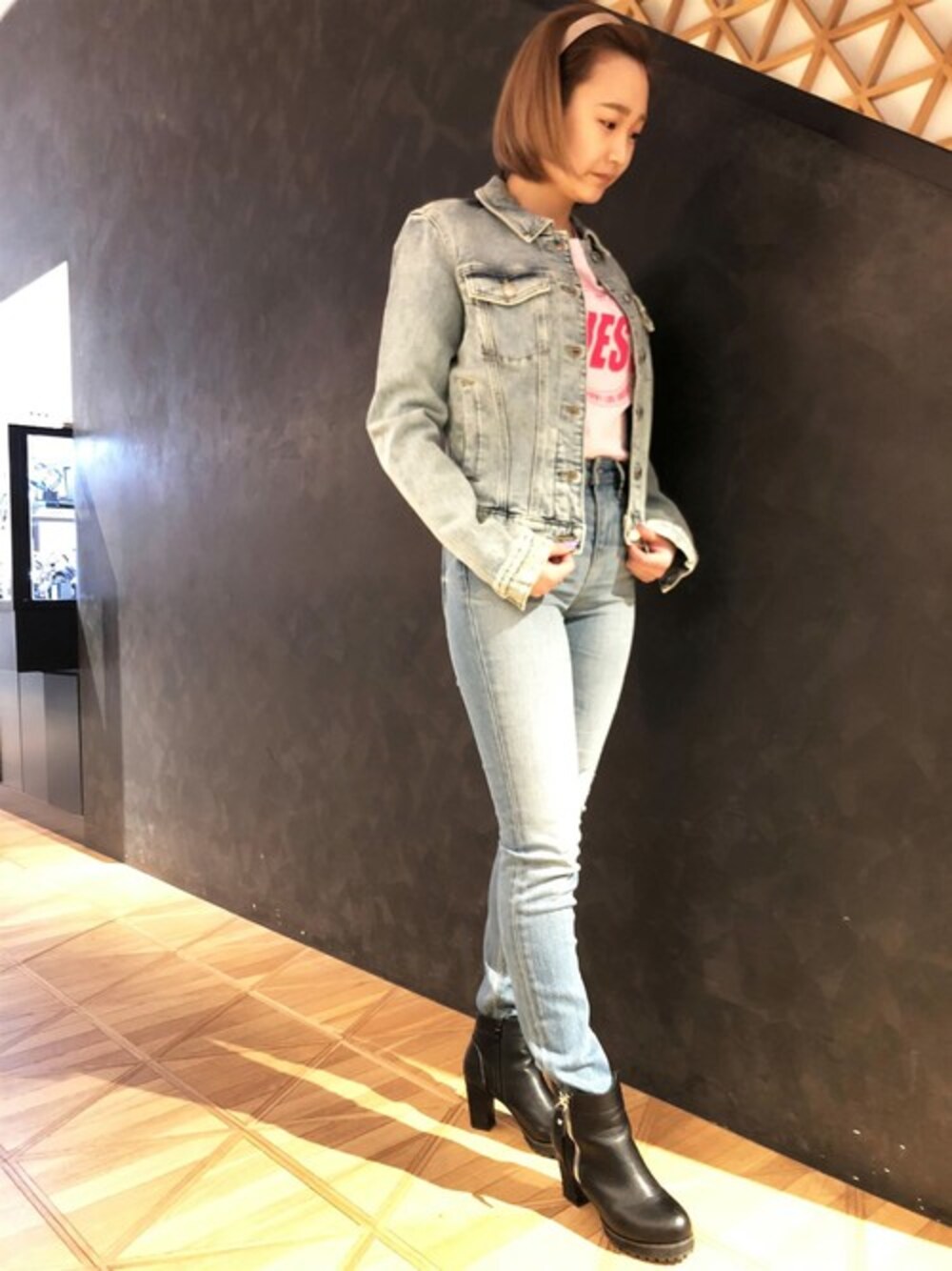 GUESS JAPAN(GUESS JAPAN)のデニムジャケット「Sexy Trucker Slim-Fit Denim Jacket」を使ったコーディネート