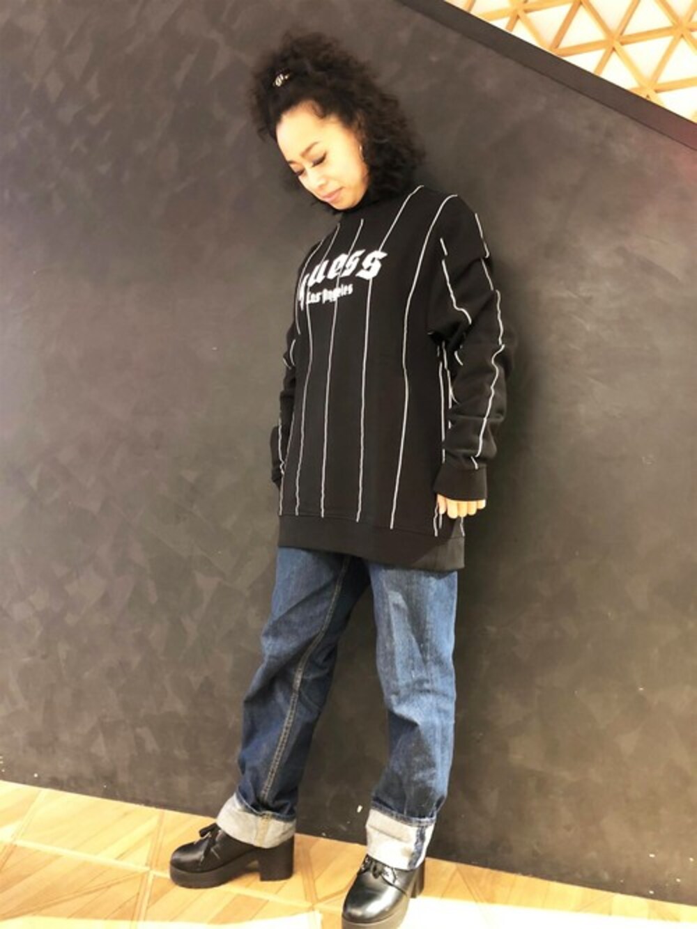 GUESS JAPAN(GUESS JAPAN)のスウェット「JUDD PINSTRIPE FLEECE SWEAT」を使ったコーディネート