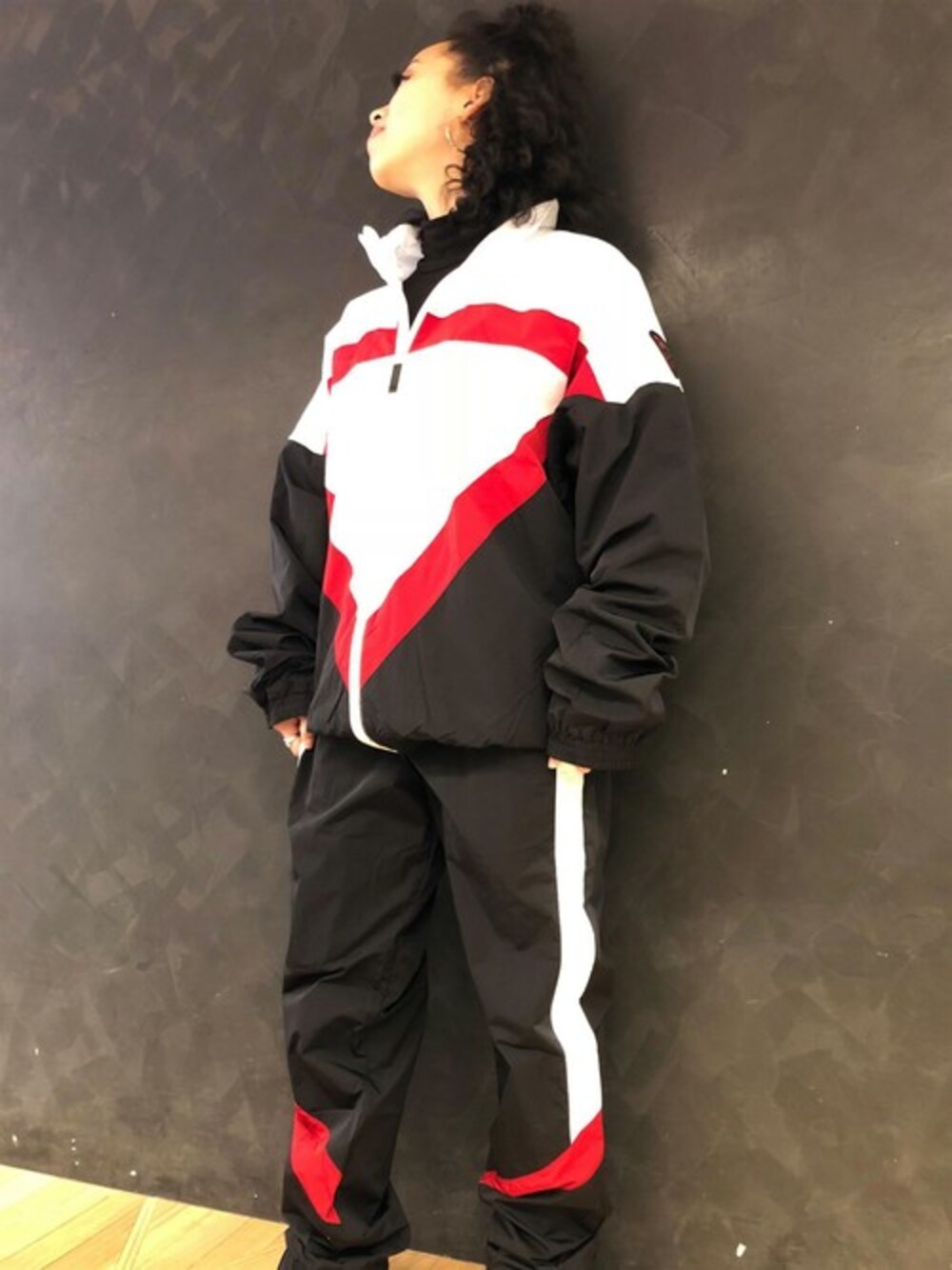 GUESS JAPAN(GUESS JAPAN)のナイロンジャケット「SPORTY TRIANGLE LOGO WINDBREAKER」を使ったコーディネート