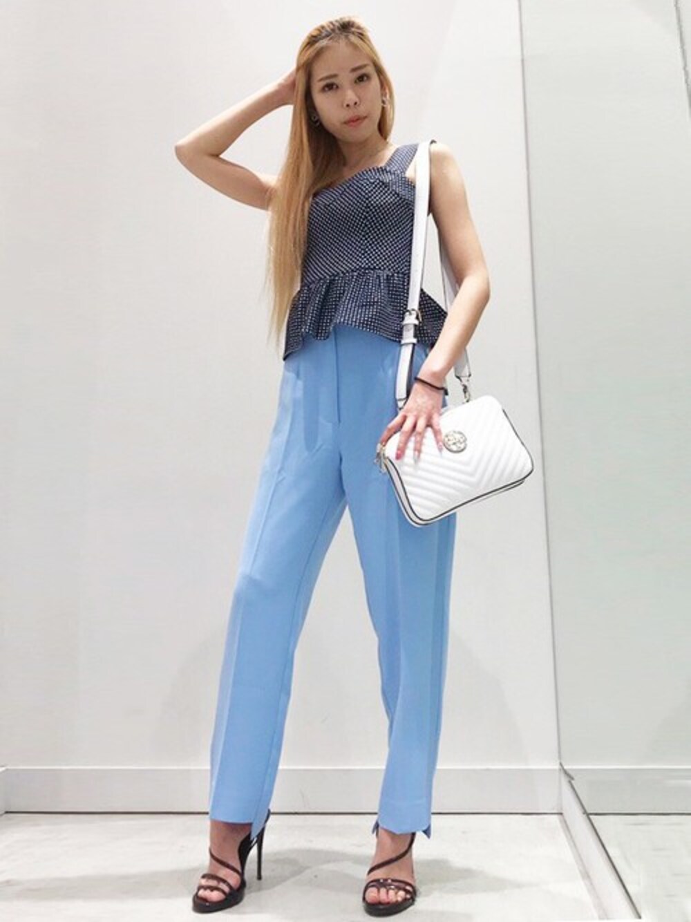 GUESS JAPAN(GUESS JAPAN)のキャミソール「Sleeveless Nadine Peplum Top」を使ったコーディネート