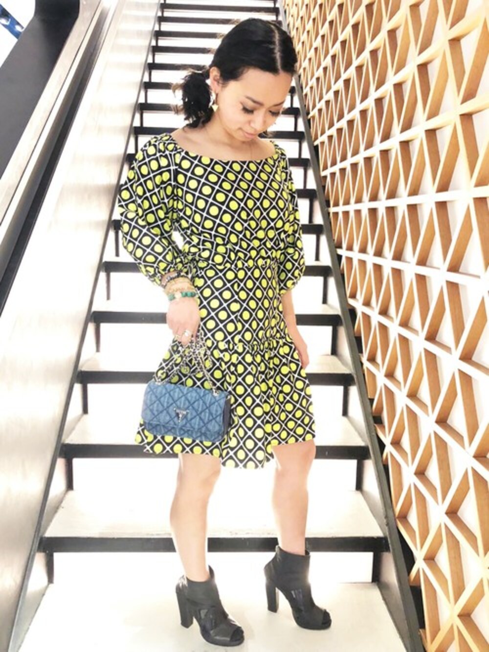 GUESS JAPAN(GUESS JAPAN)のワンピース「Ottavia Off-Shoulder Printed Dress」を使ったコーディネート