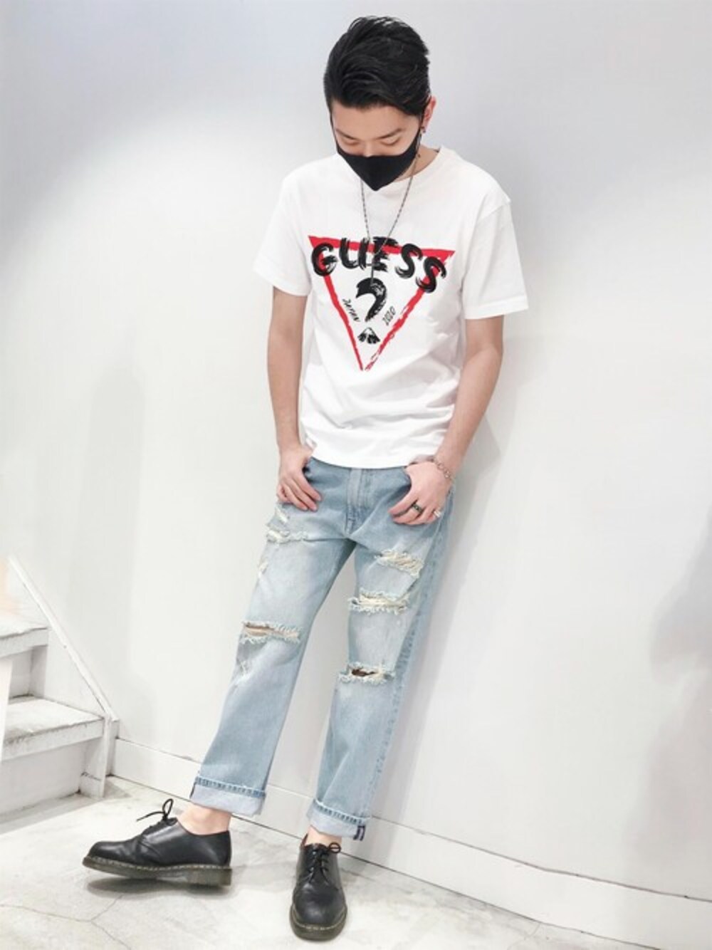 GUESS JAPAN(GUESS JAPAN)のTシャツ/カットソー「Japan 2020 Triangle Logo Tee」を使ったコーディネート