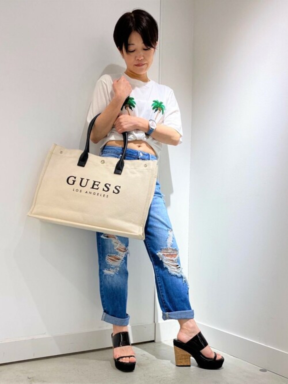 GUESS JAPAN(GUESS JAPAN)のTシャツ/カットソー「Marcela Beaded Palm Tee」を使ったコーディネート