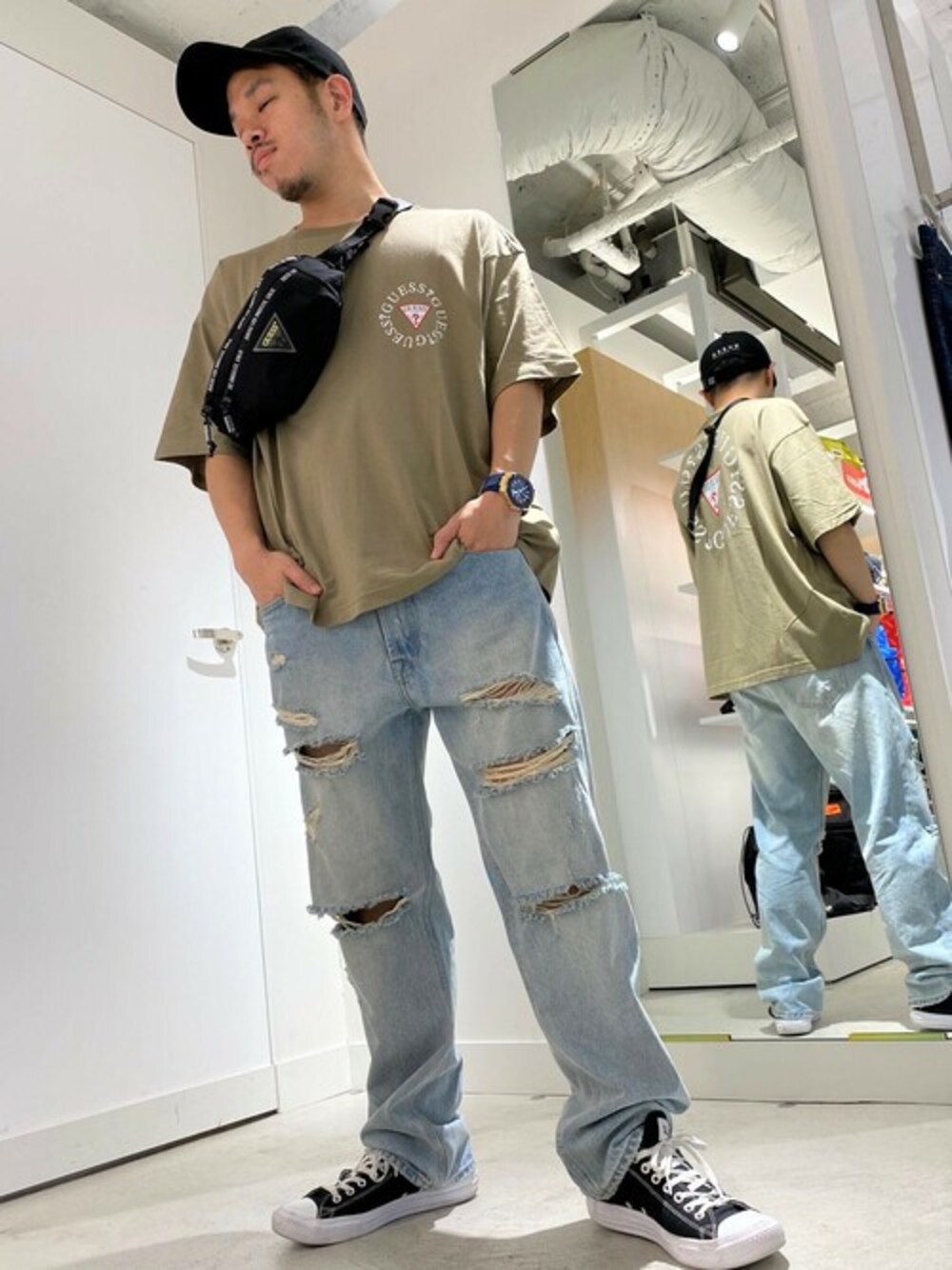GUESS JAPAN(GUESS JAPAN)のTシャツ/カットソー「Oversized Circle Triangle Logo Tee」を使ったコーディネート
