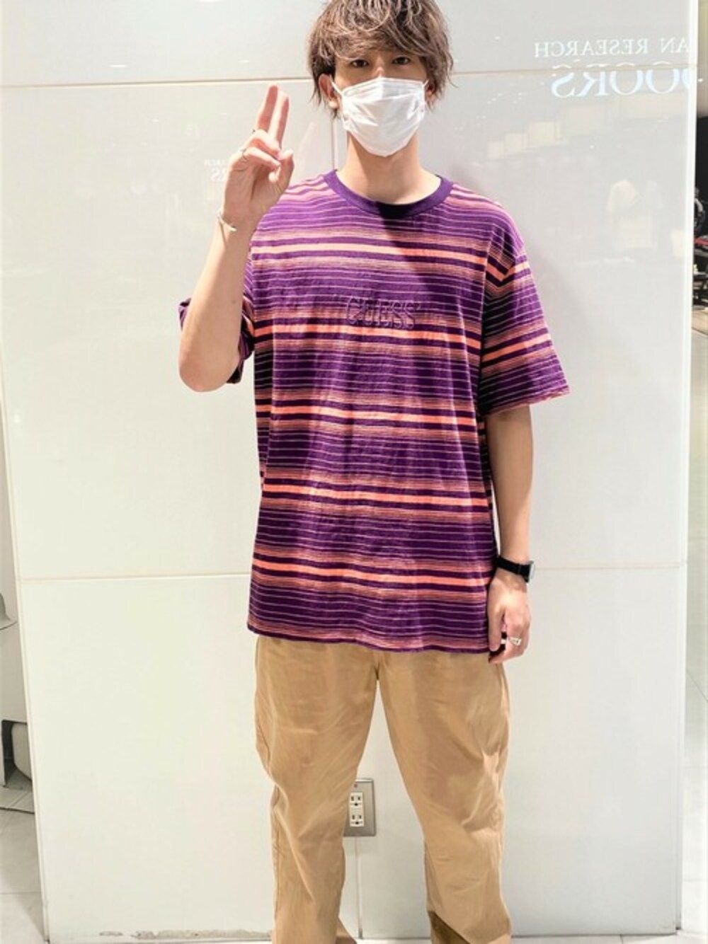 GUESS JAPAN(GUESS JAPAN)のTシャツ/カットソー「GUESS Originals Cascade Stripe Tee」を使ったコーディネート