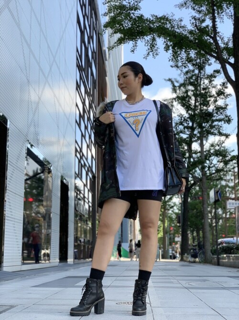GUESS JAPAN(GUESS JAPAN)のTシャツ/カットソー「Sticky Triangle Logo Round-Neck Tee」を使ったコーディネート