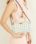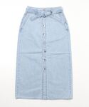 半袖のメッシュニット×デニムスカートで涼しげでフェミニンなコーディネートです。 デニムスカートはデザイン性たっぷりなので、シンプルなトップスにも合わせやすいです! デニムに合わせて、バッグはブルーのツイードを選びました。