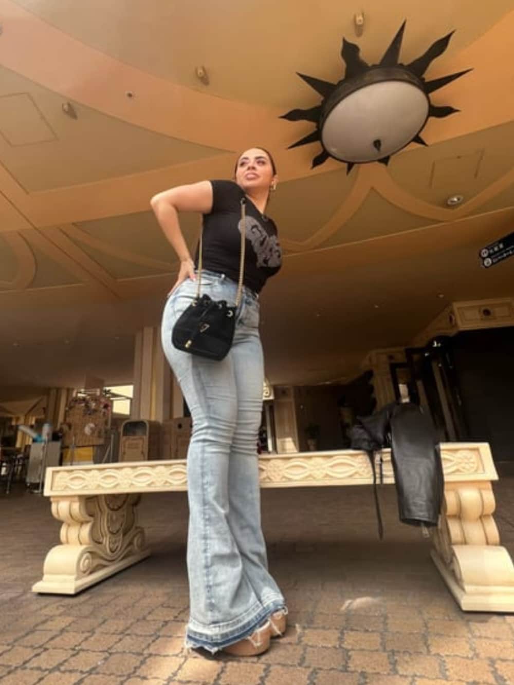 脚長効果抜群のブーツカットにTシャツとシンプルコーデ⭐︎ デニムの丈は長めなのでヒールで合わせて更にスタイルアップ◎ ライダースは形にデザインに全部が合格◎