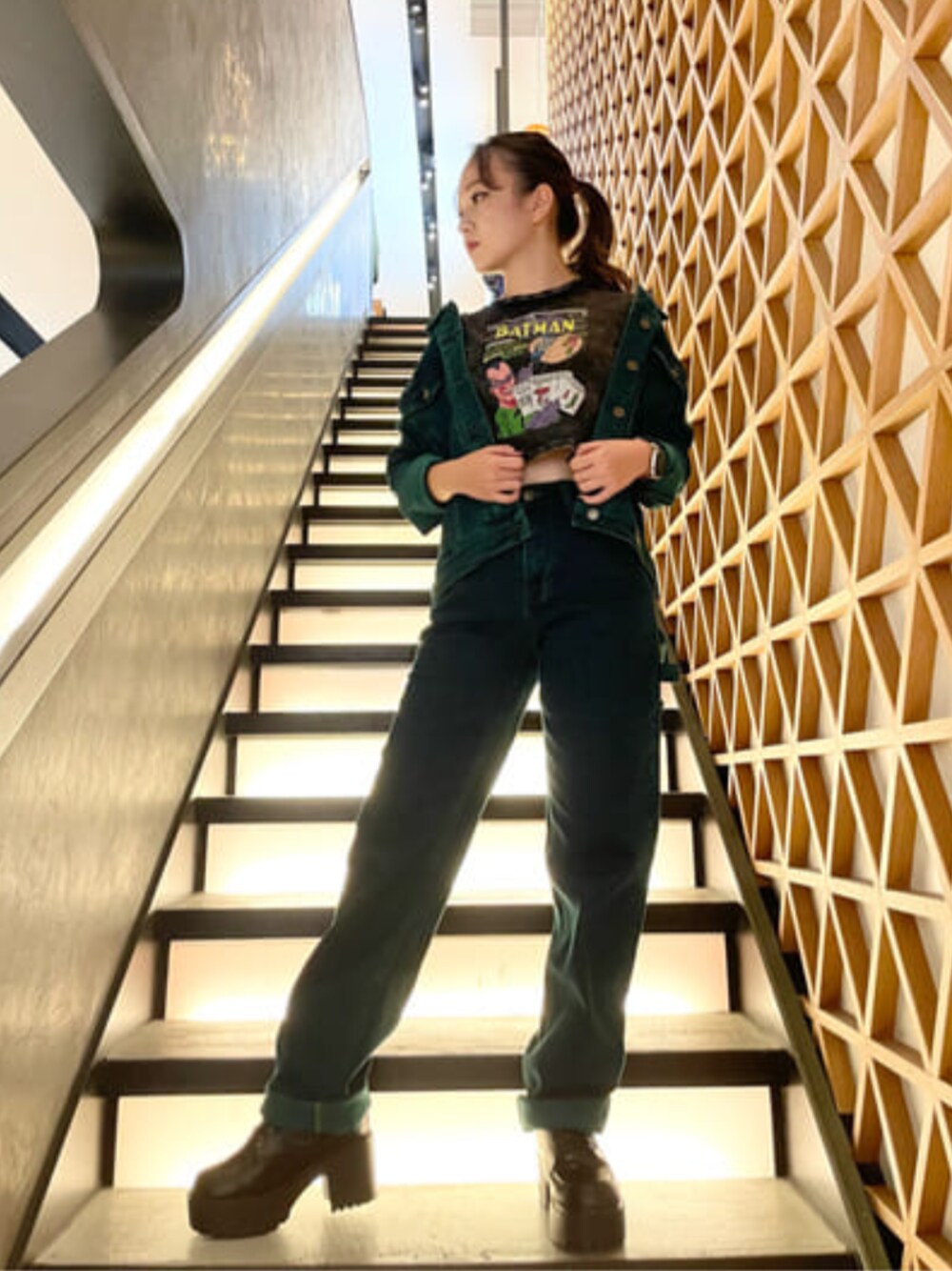 GUESS JAPAN(GUESS JAPAN)のデニムジャケット「GUESS Originals x Batman Oversized Embossed Jacket」を使ったコーディネート