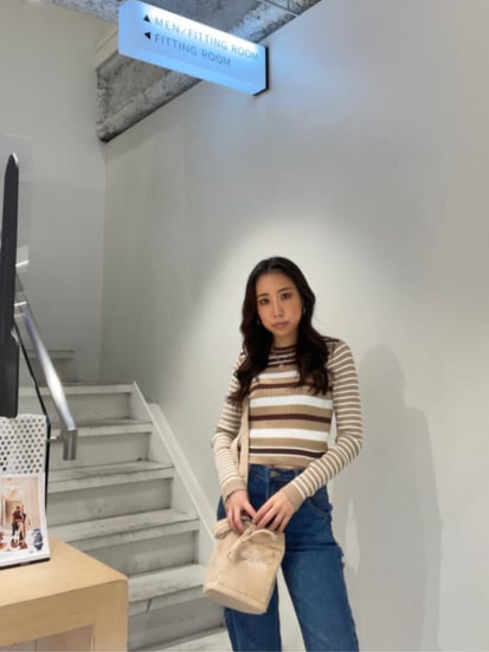 ブラウンカラーとコーデュロイでつくる秋コーデです。 カーペンターのデニムは濃いめのブルーで、秋冬に着回せるので◎ バッグは服装に合わせて、ショルダーストラップを付け外し可能です。 アクセはピンクゴールドが馴染みやすくてオススメです。