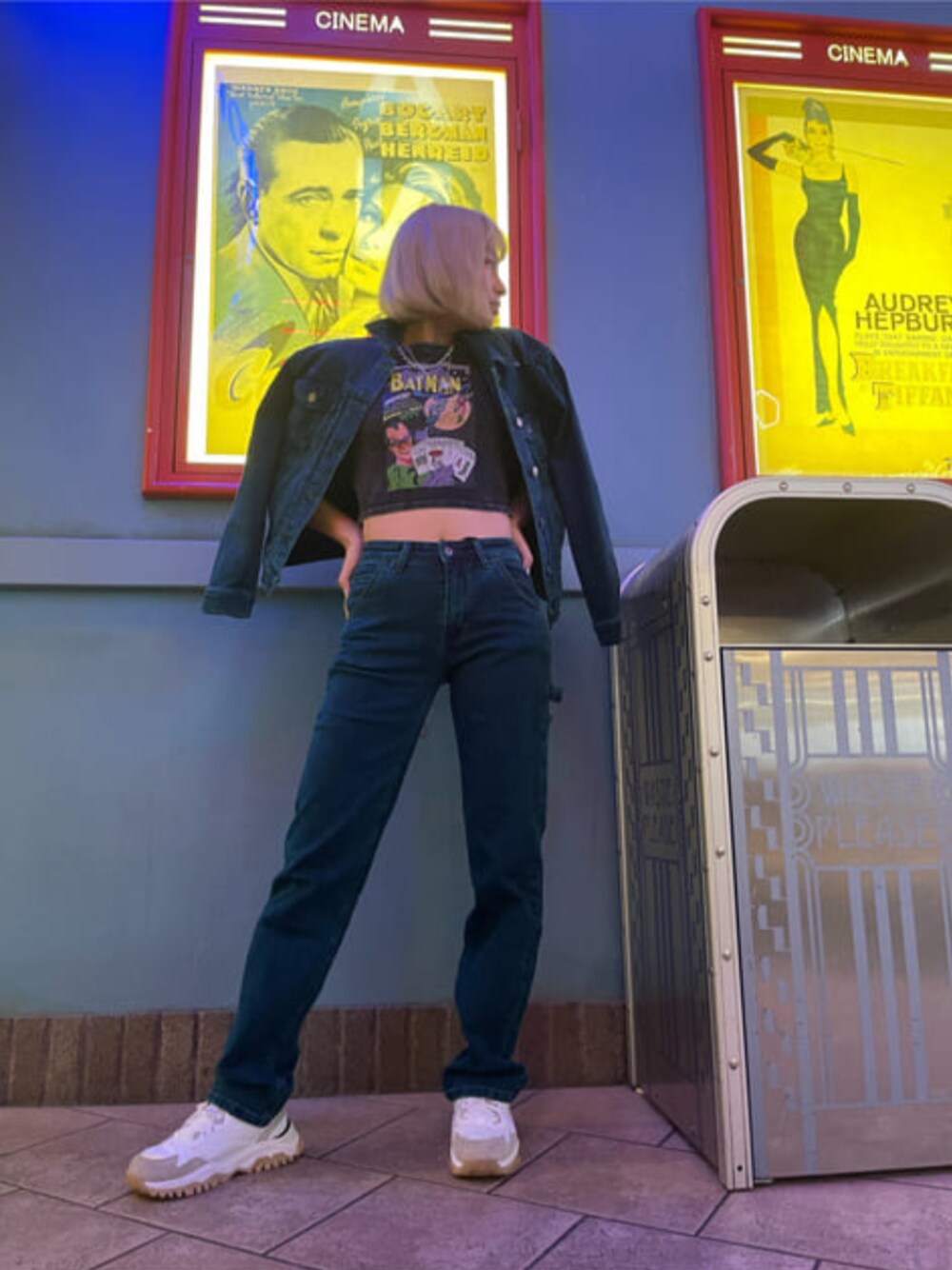 GUESS JAPAN(GUESS JAPAN)のデニムジャケット「GUESS Originals x Batman Oversized Embossed Jacket」を使ったコーディネート