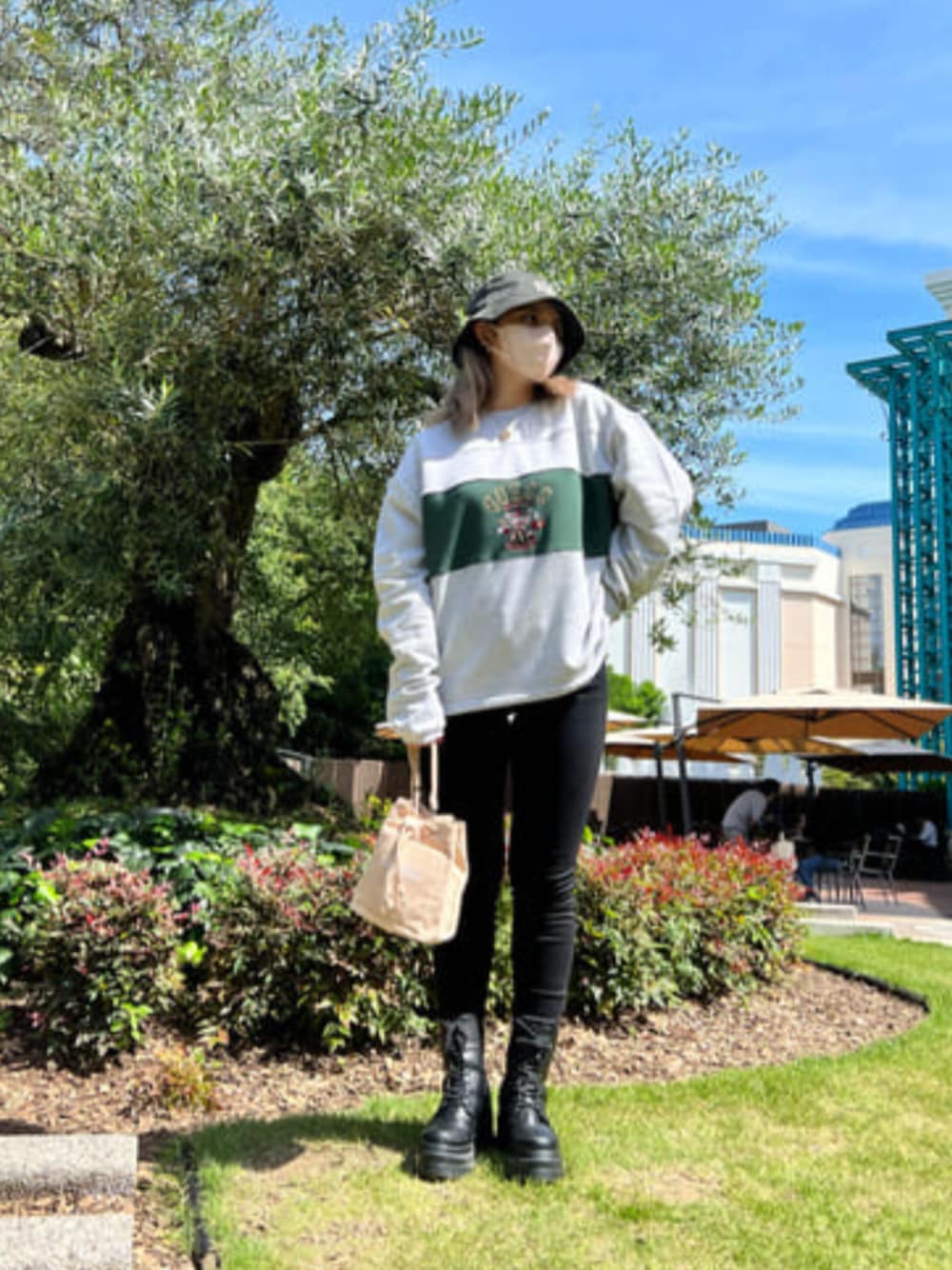 トップスはレディースの中では若干大きめの作りで、裏起毛なので暖かいです(╹◡╹) 裾部分がゴムになっているので、絞ってショート丈にして2WAYで使えます!!! デニムは大人気で定番、ストレッチ抜群のマリリンスキニーデニムʅ(◞‿◟)ʃ バッグは斜め掛けショルダーも付いています◎