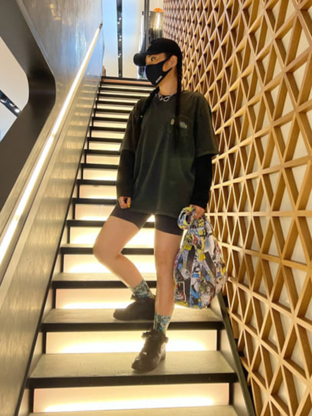 バックプリント付きBatman TシャツはロングTシャツ重ね着で秋コーデに(^^) スニーカーコーデにぴったりです!! ハイソックスもBatmanデザインでパーカーやトレーナーと合わせても可愛いです!