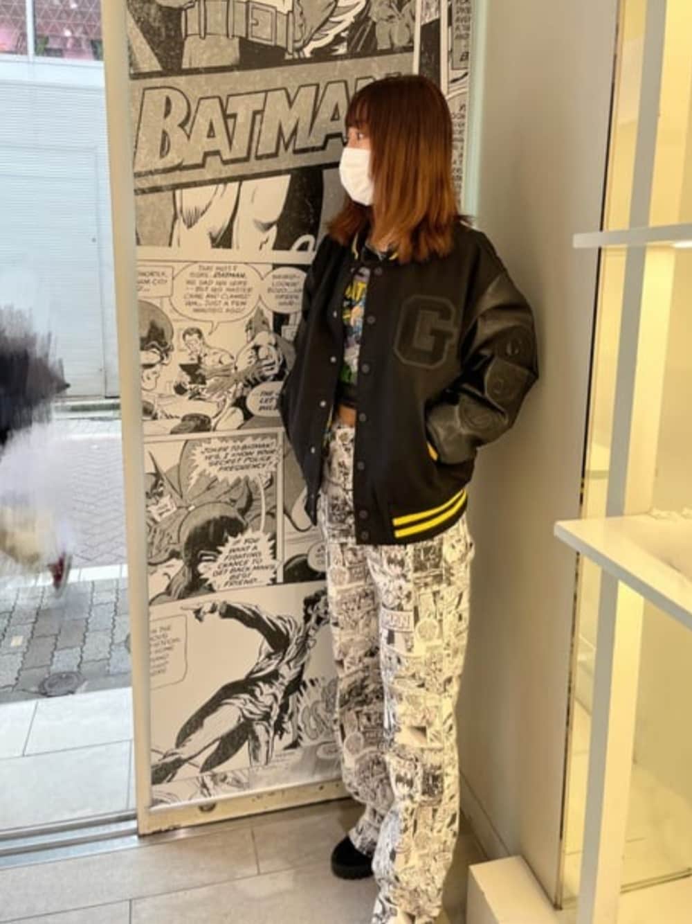 GUESS JAPAN(GUESS JAPAN)のスタジャン「GUESS Originals x Batman Patched Varsity Jacket」を使ったコーディネート