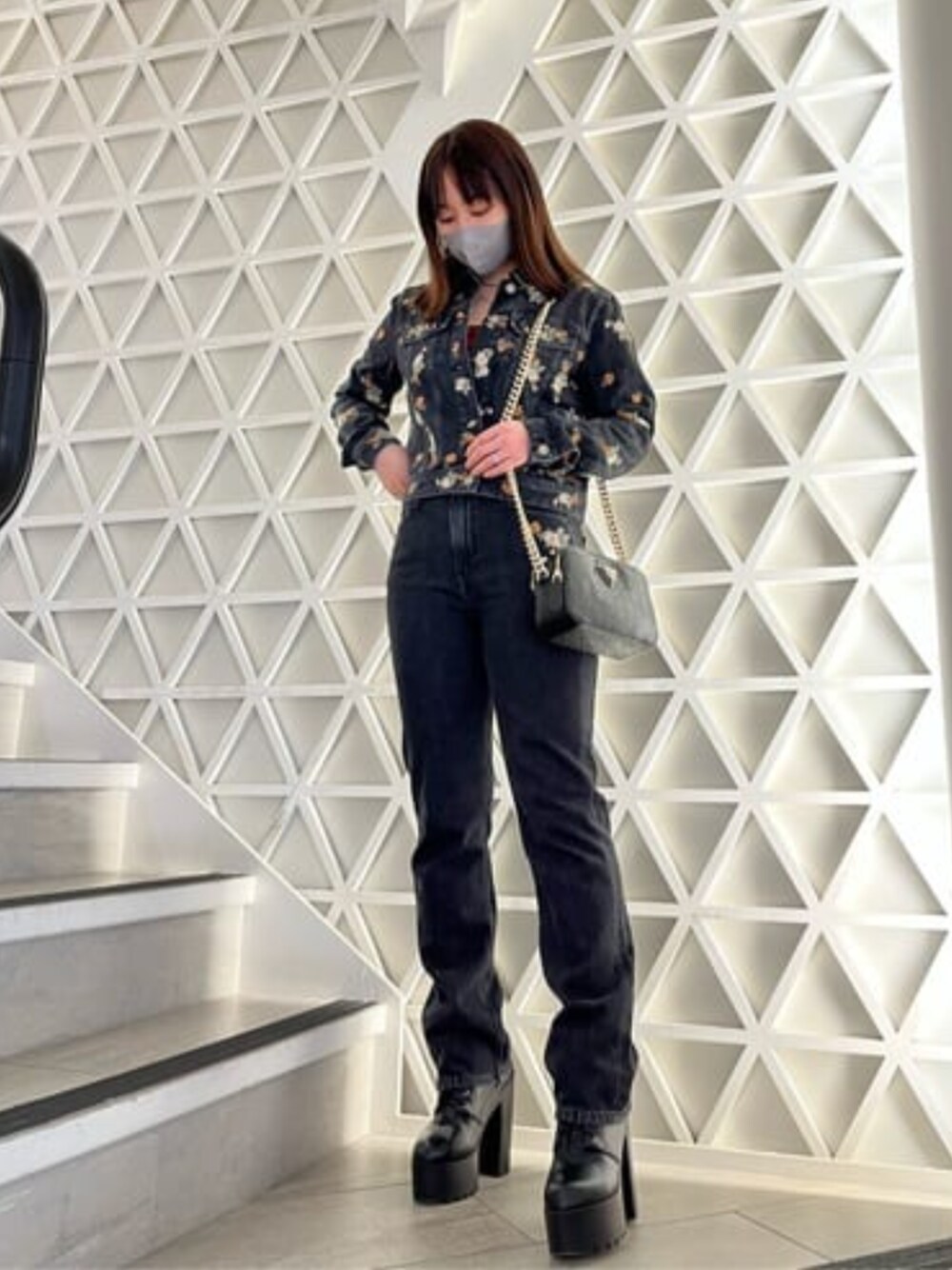 フラワーの刺繍がほどこされてる デニムジャケットと、ボトムス セットアップで統一感を◎ 女性らしい柔らかい雰囲気に。 Aラインスカートのワンピース等 デニムジャケットを羽織ってコーデすると相性がとてもいいです。 セットアップは、少しカジュアル感がでますね。